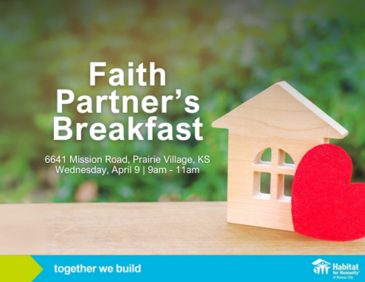 Join Habitat KC for an inspiring Faith Partner's Breakfast on Wednesday, April 9th, as we gather faith leaders from across the community to share how they're making a difference in the lives of their neighbors. This event is a unique opportunity to learn about Habitat KC's mission to provide affordable housing solutions for families in Kansas City and discover how you can play a vital role in supporting this important work.Details:π Date: Wednesday, April 9th